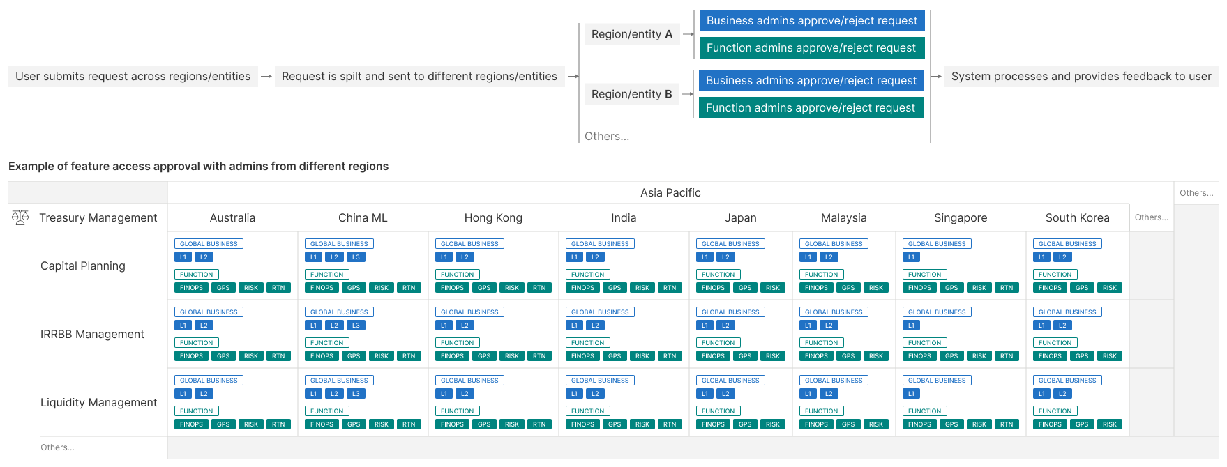Below is the approval process for a user access request involving data across different regions/entities, business units, and function groups: