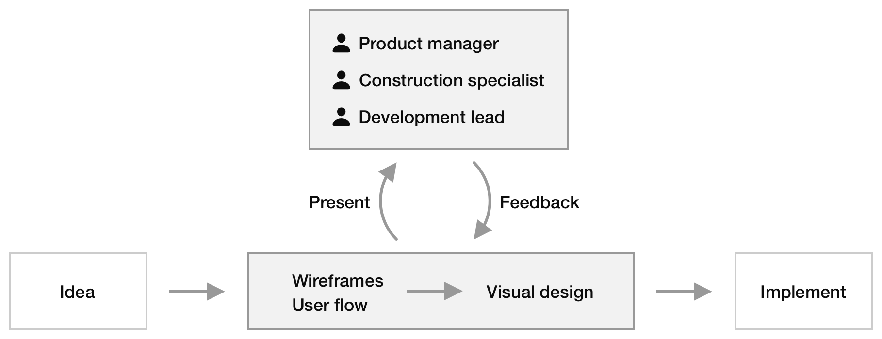 During the design process, I continually consulted with construction specialist to make sure the design fulfill the business requirement, and also discussed with developers to understand the technical limit. It's an iteration process. I make sure everything is right and feasible before handing over to developers for implementation.