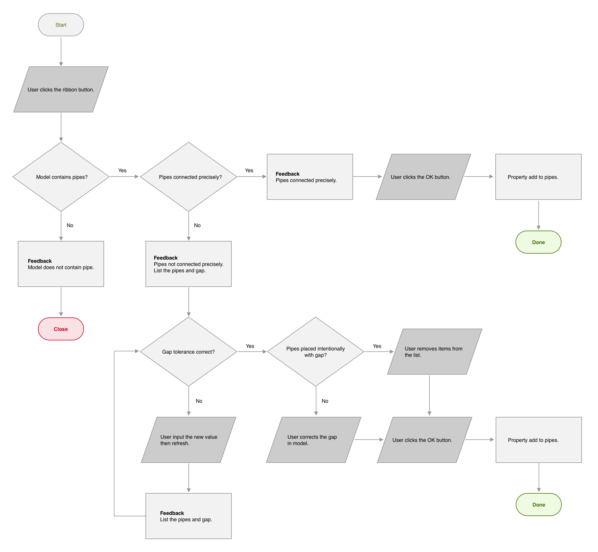 This user flow is about a feature of pipes length measurements in BIM.